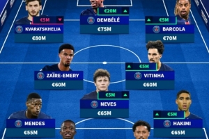 法甲身价最高阵:巴黎包揽11人,K77最高,登贝莱、维蒂尼亚在列